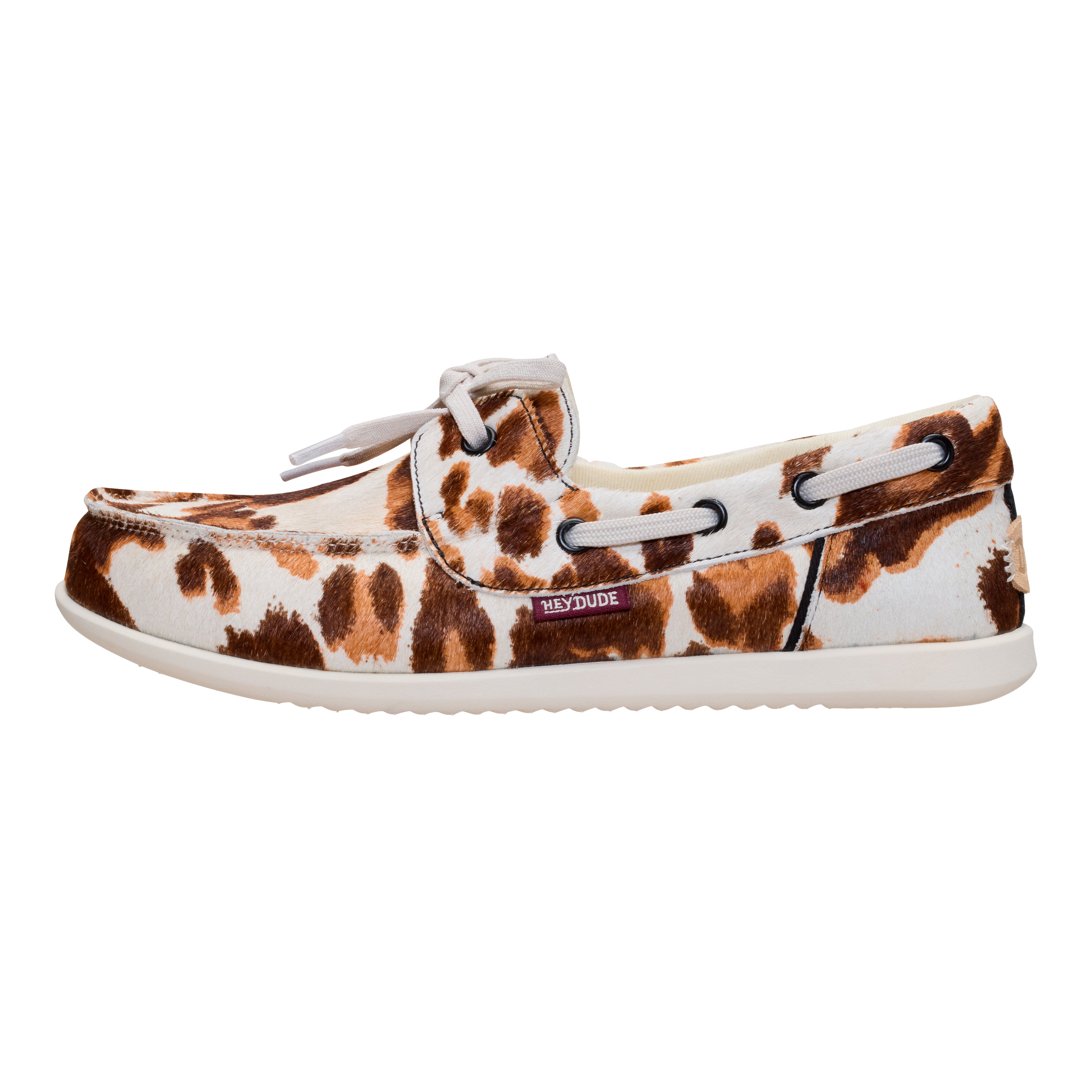 Marca tendencia con las slip-ons Wendy Cow, una versión lujosa de los clásicos zapatos de barco con estampado de vaca. La parte superior está hecha de cuero auténtico con textura que recuerda al pelo de ternero, mientras que el cordón tipo “skip lace” aporta un toque náutico atemporal. Combínalas con vaqueros anchos, shorts cortos, faldas vaporosas y más: el mundo es tu ostra.