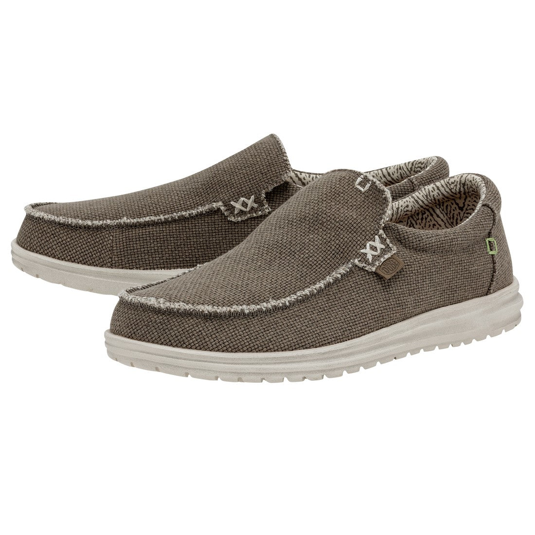 Mocassim clássico com amplo ajuste. Um design ecológico, preparado com algodão orgânico ultra resistente e respirável. Possui um cordão elástico interior que facilita o ajuste do sapato. Além disso, esses mocassins foram fabricados sem produtos de origem animal. Suas principais características são: