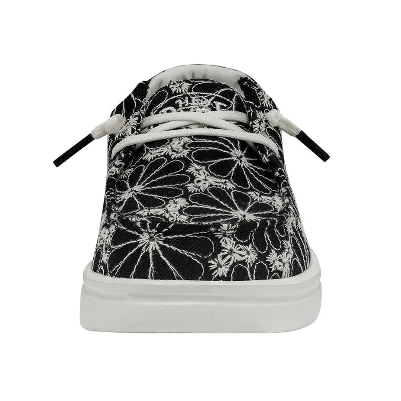 O ilhó de Wendy Rise é fabricado com uma parte superior têxtil leve e supercomabilizável, bordada com belos motivos florais. Seus cordões elásticos facilitam a colocação e a remoção, e seus modelos de espuma adicionam um amortecimento extra. Tudo isso na sola clássica de espuma Eva com uma plataforma da linha de ascensão. Suas principais características são: