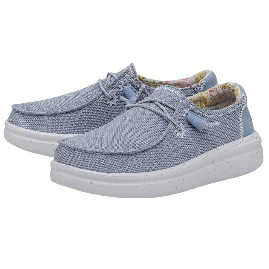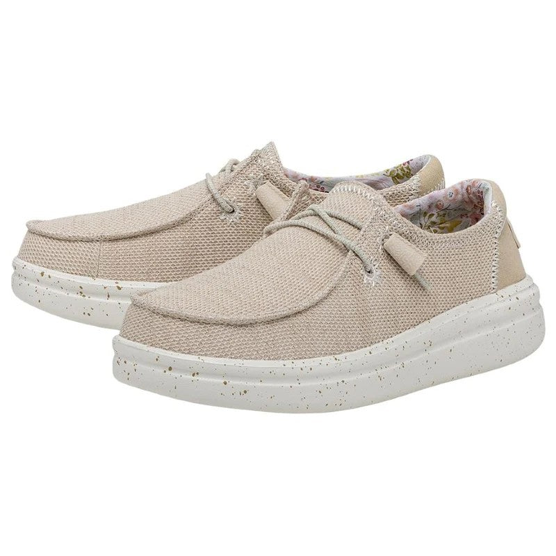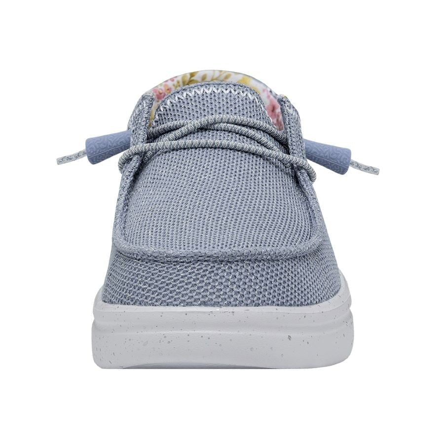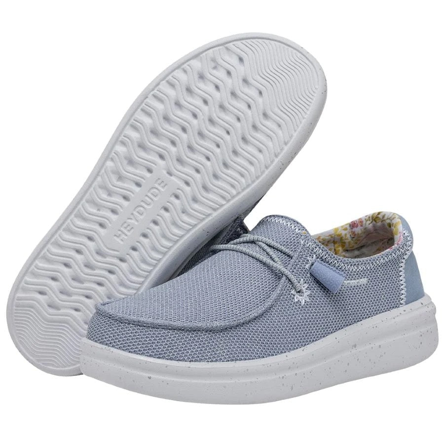 O trecho de Wendy Rise é fabricado com uma parte superior do poliéster com textura de ponto aprimorada por detalhes sutis bordados em suas costuras. Seus cordões elásticos facilitam os modelos de calçados e espuma adicionam um amortecimento extra. Tudo isso sobre a sola clássica com a plataforma de linha de ascensão. Suas principais características são: