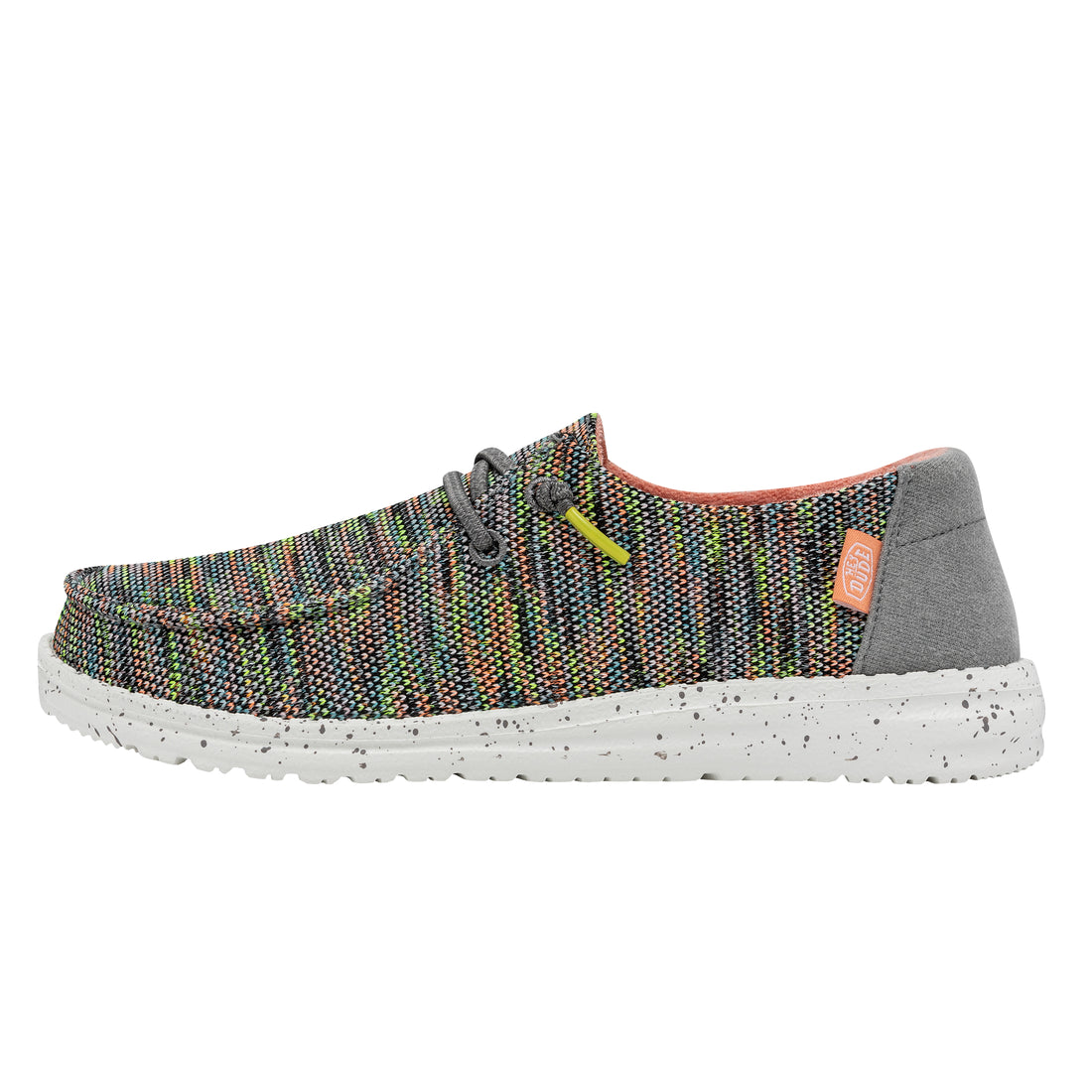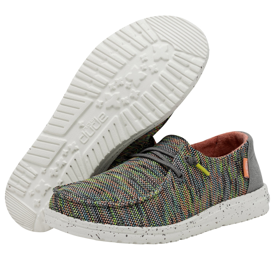 O sapato icônico da nossa empresa projetou como um mocassim clássico em tecido elástico respirável. Tem a nossa sola patenteada por Eva. Nosso sistema fácil é caracterizado pela presença de cabos elásticos que não precisam ser amarrados. Suas principais características são: